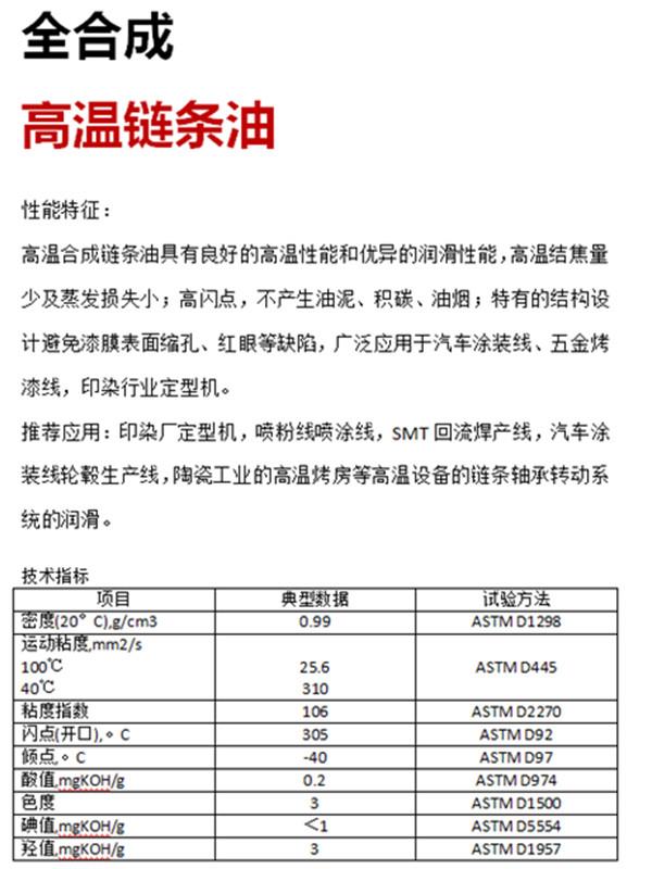 廈門威馬工貿(mào)有限公司位于美麗的花園城市-廈門市同安區(qū),公司專營合成高溫油脂系列產(chǎn)品。產(chǎn)品分為:高溫鏈條油、高溫潤滑脂、高低溫潤滑脂等系列油品。廣泛應(yīng)用于:定型機、噴涂/噴粉、巖棉等高溫潤滑設(shè)備,本品無煙,無殘渣,屬于全合成高溫油系列,可寄樣試用,長期服務(wù)全國客戶。
